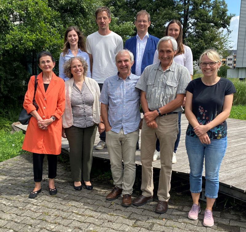 (Herr Dr. Römersperger - im blauen Jackett - verabschiedete folgende Kolleginnen und Kollegen. Von links: Martina Geilen, Susanne Illgner, Carolin Bachmann, Matthias Traub, Michael Spellig, Raphalea Born, Guido Benz, Tamara Hallmann)